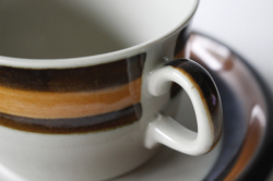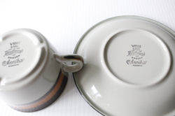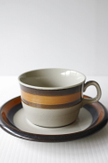 スウェーデン、Rorstrand(ロールストランド)のANNIKA(アニカ)シリーズのコーヒーカップ&ソーサーです。ロールストランドの人気デザイナーMarianne Westman(マリアンヌ・ウェストマン)の代表作です。丸みのあるフォルムとオレンジ×ブラウンの温かみのあるデザインです。