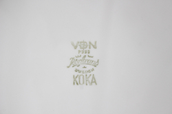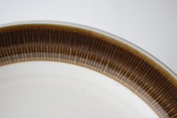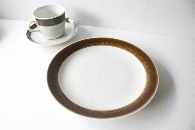 スウェーデン、Rorstrand(ロールストランド)の「KOKA」(男の子の意)シリーズ、ブラウンのデザートプレートです。Hertha Bengtsson(ヘルサ・ベングトソン)デザインの人気シリーズです。清々しい白磁に爽やかなチョコレート色の帯のコントラストが素敵です。