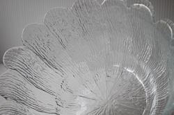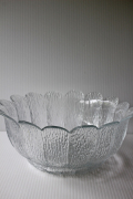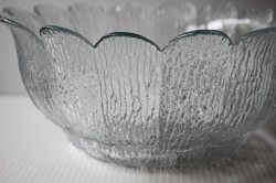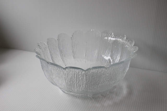 デンマークの王室御用達ブランド、Holmegaardの特大ガラスボウルです。こちらはお花がモチーフになっています。大変厚みのあるガラスの作りで、どっしりとしており、果物などを盛り付けて、サイドボードに置いたり、サラダやなどをたっぷりと食卓でサーブしても素敵です。特に上から見ると大変華やかでテーブルが素敵に演出できそうですね。大きいサイズは入荷が少ないので、お探しの方はお見逃しなく!