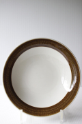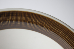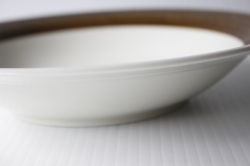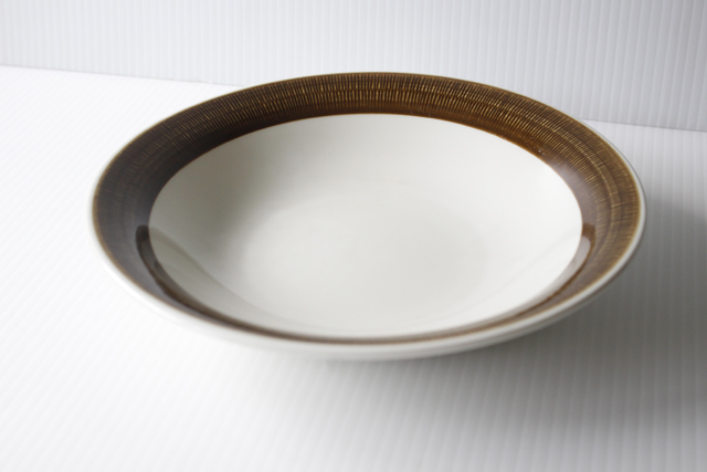 スウェーデン、Rorstrand(ロールストランド)の「KOKA」(男の子の意)シリーズ、ブラウンのスーププレートです。Hertha Bengtsson(ヘルサ・ベングトソン)デザインの人気シリーズです。清々しい白磁に爽やかなチョコレート色の帯のコントラストが素敵です。