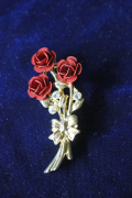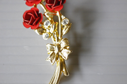 デンマークで見つけたヴィンテージのブローチです。こちらはバラの花がモチーフで、深いレッドカラーとゴールドカラーのコンビネーションがが大変美しいです。蚤の市気分で、気軽にお使い頂けるアクセサリーです。