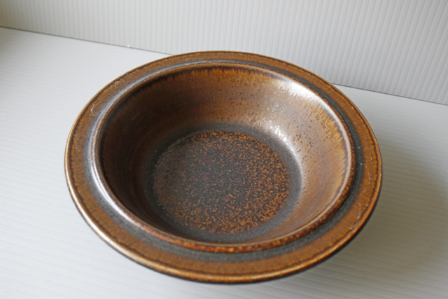 フィンランド、ARABIA/Ulla Procope(ウラ・プロコッペ)デザイン、Ruskaシリーズのサラダボウルです。備前焼きに通じるような渋いデザインで、ひとつひとつ微妙に異なる釉薬の趣が魅力です。個々に個性がありますのでお気に入りを見つけてください。どんなお料理にも映えて多用できますね。