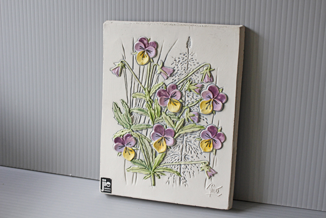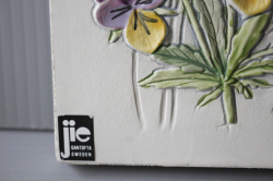 スウェーデンのjie gantofta社製の陶器の壁掛けです。こちらは可愛らしいパンジーがデザインされています。白地ですので、花の色が鮮やかで、凹凸のある立体感が大変美しいです。jieの陶板の中でも、白地のものは珍しくオススメです。