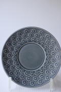 デンマーク、Jens.H.Quistgaard(イェンス・クイストゴー)デザインAzurシリーズのソーサーです。杏の花の可愛らしいモチーフでありながら、ブルーグレーの落ち着いた色合いが甘くなりすぎず素敵です。ツヤのないマットな釉薬が使われており、見ていてホッと和む雰囲気を持っています。こちらは1点1点釉薬の濃さや形状が微妙に違います。工業製品とは違う手作りの良さをお楽しみ下さい。八角形のソーサーをお持ちの方にはこちらの丸型ソーサーで衣替えを楽しんで頂いたり、ソーサーのリム部分が広いので、お皿として真ん中の丸い部分に和菓子などを乗せて頂いても、乗せている物を綺麗に見せてくれたりと、いろいろと活用して頂けそうです。