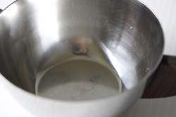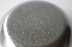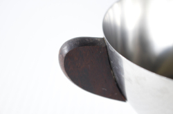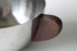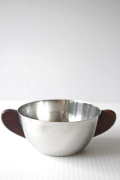 デンマークで見つけたヴィンテージの耳付きステンレスボウルです。持ち手にはチーク材が使われており、シャープなステンレスに温かな雰囲気をを出しています。見た目もコロンと可愛らしいです。