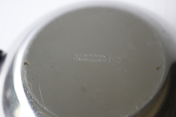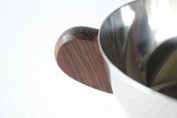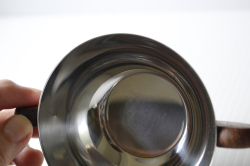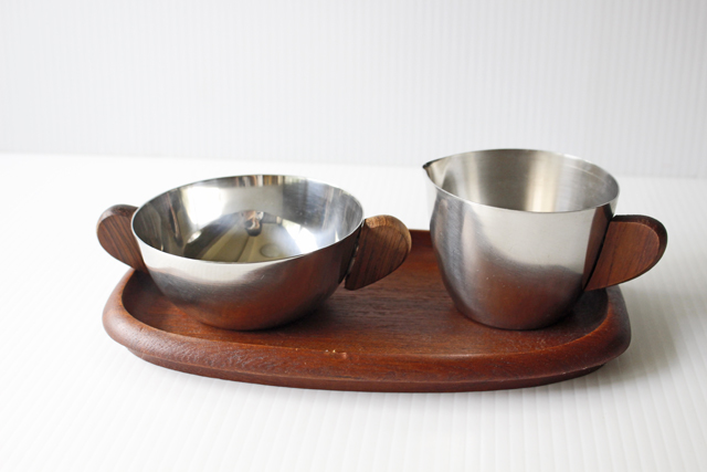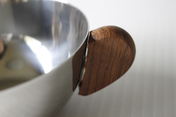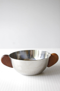 デンマークで見つけたヴィンテージの耳付きステンレスボウルです。持ち手にはチーク材が使われており、シャープなステンレスに温かな雰囲気をを出しています。見た目もコロンと可愛らしいです。