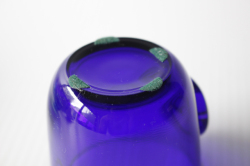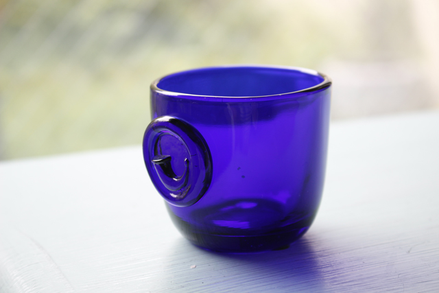 デンマーク、Holmegaard(ホルムガード)のガラスのグラスです。こちらは1960年代に作られたデザインで、バイキングの笛がモチーフです。美しいコバルトブルーの色ガラスに丸みのあるスクエアフォルムが手にコロンと馴染む、素敵な作品です。一つ一つが手作りの為、個性的で味わいがあります。