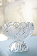 デンマークで見つけたガラスの足つきボウルです。こちらは幾何学模様のような個性的なカッティングにクリアガラスとすりガラスのコンビネーションがとても素敵な作品です。脚付きですので華やかさもあり、食卓で、またサイドボードに置いてアクセサリーを飾りながら乗せたりと多様にお使い頂けそうです。大きさもたっぷり、また北欧らしい可愛らしさもあり、とてもおススメです。