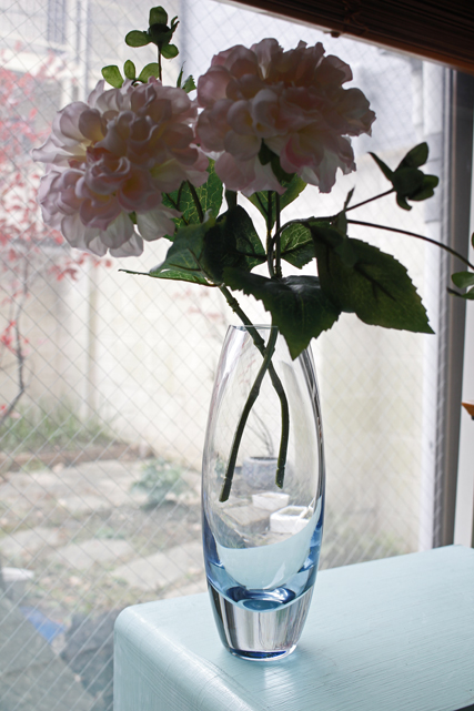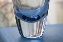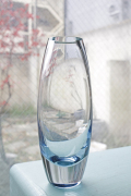 デンマーク、Holmegaard(ホルムゴー)のガラスの花瓶です。柔らかなクリアブルーのガラスのシンプルなフォルムでどんなお花でも合わせられそうです。それなりのサイズがあり重さもあるので安定感がありますので、大き目のお花もOKです。滑らかな肌触りは、質の高さを感じさせます。裏面に刻印があります。