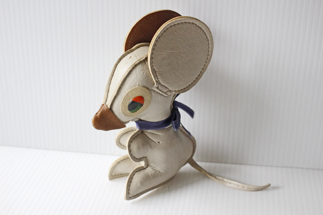 ヴィンテージのお人形です。素材は合皮です。こちらは少し眠たそうな表情のどこかしらトムとジェリーのジェリーのような懐かしいほっこりとしたネズミさんです。レトロなオブジェやお人形のコレクションにいかがでしょうか。
