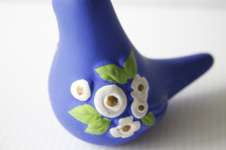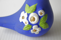 スウェーデン/Rosa Ljungデザインのオブジェです。こちらは小鳥がモチーフになっていて中央には、Rosa Ljungの得意なお花がデザインされており可愛らしい雰囲気です。こちらは鮮やかなコバルトブルーがハンドペイントで施されています。