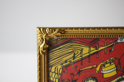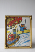 デンマークのアンティークショップで見つけたフォトフレームです。中にはアンティークの刺繍やレース、また写真や古い絵本の切抜きを入れても素敵なインテリアとしてお使いいただけるでしょう。掲載写真には古い絵本の切り抜きが入っています。プクプクした縁周りのデザインが、とても素敵です。こちらは立てかける衝立のないタイプになり、壁に吊り下げるか壁に立てかけて飾っていただきます。