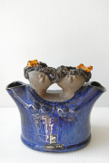 スウェーデンのjie gantofta社製の花瓶です。こちらは鮮やかなコバルトブルーのベースの中に双子の女の子が仲良く並んでいます。左右上部の穴にお花を活けていただくと、華やかです。ぷっくりとしたユニークなデザインはあまり市場では見かけないタイプでお勧めです。