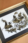 デンマークの国民的人気デザイナーBjorn Wiinblad(ヴョルン・ウィンブラッド)の美しい影絵(イラスト)です。ヴョルンといえば絵皿が有名ですが、イラストレーターとしての作品も素晴らしいのです。こちらは影絵に金彩で表情がつけられています。ガラスも遮光ガラスになっており、光りすぎずマットな印象です。また当店初入荷の小さなサイズで場所を選ばず飾っていただけるでしょう。