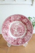フィンランド、アラビアのディナープレートです。1940年代~1960年代に製造されたとても古いもので、フィンランドの風景がデザインされています。プリントの技術なども今の時代と比べて素朴さが感じられますが、レトロな味わいをもった素敵なお皿です。赤い色も素敵ですね。