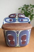 デンマーク、Royal Copenhagen(ロイヤルコペンハーゲン)の「テネラ」シリーズの塩入れです。こちらは、Inger-Lise Koefoedデザインで植物が抽象的にデザインされており、ブルーやパープルの華やかな雰囲気です。壁にかけられるようになっているので小物入れとしてお使いいただいてもよいでしょう。