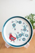 1960年代にFiggoと合併したノルウェーのStavangerflint(スタヴァンゲルフフリント)社のデザートプレートです。クジャクがデザインされた可愛らしい図柄で、ハンドペイントで彩色された味わいのある仕上がりです。ローズピンクとターコイズブルーの組み合わせがレトロな雰囲気も醸しだしていますね。可愛らしい食卓を演出してくれるレアなお皿です。
