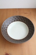デンマーク、Jens.H.Quistgaard(イェンス・クイストゴー)デザイン「Plum」シリーズのスープボウルです。杏の花の可愛らしいモチーフでありながら、ブラウンの落ち着いた色合いが甘くなりすぎず素敵です。ツヤのないマットな釉薬が使われており、見ていてホッと和む雰囲気を持っています。大きさも厚みもしっかりあり、存在感があります。今回入荷分は、中央部に細かい貫入があり和陶器のような趣も感じられます。