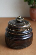 ARABIA/Ulla Procope(ウラ・プロコッペ)デザイン、DGシリーズのシュガーポットです。少し丸みを帯びた優しいフォルム、凹凸に釉薬が流れ込んで地層のような表情を見せています。手馴染みもよく、和洋どちらの食卓にも合わせやすく佃煮などを入れてもよいでしょう。