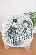 デンマークで人気のアーティスト/Bjorn Wiinblad(ヴョルン・ウィンブラッド)デザインの飾り絵皿です。お馴染みのマンスリープレート12月(奇跡)と同じデザインです。赤ちゃんが生まれ幸せに包まれる家族の様子を描いています。こちらはマンスリープレートよりも大きく絵皿なので迫力ある仕上がりとなっています。こちらは壁にかけられるように裏に穴が開いています。