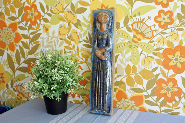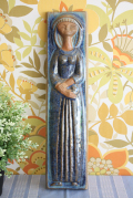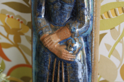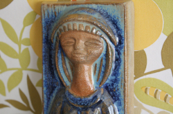 デンマークのMichael Andersen & Son社の陶板の壁掛けです。デザインは数々の女性らしい柔らかな作品を生み出したMarianne starckになります。美しいブルーの釉薬が、厳かで優しい雰囲気を醸し出しています。こちらは立てかけても、また壁のフックにも引っかけられるようになっています。