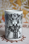 デンマークで人気のアーティスト/Bjorn Wiinblad(ヴョルン・ウィンブラッド)のフラワーベースです。デザインのフローラというタイトルと通り、美しいお花を手にした女性が佇んでいます。