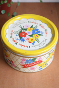デンマークで見つけたヴィンテージ缶です。イエローに華やかなお花がデザインされたロマンティックな缶です。小ぶりなサイズで、お菓子を入れたり小物入れにしたりと活用できそうです。