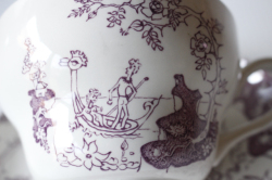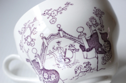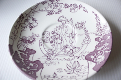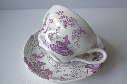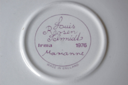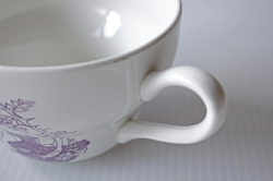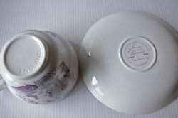 イギリス、Enoch WedgwoodのIrmaシリーズのカップ&ソーサーです。Enoch Wedgwoodは、1965年にイギリスでいろいろな合併の後できたメーカー。1980年に親戚のウェッジウッドに吸収されます。こちらのIrmaシリーズは、1975年~1976年の2年間のみ生産されたレアなものです。シャガールに多大な影響を受けたデンマーク人アーティストLouis Rosen Schmitsによってデザインされた作品です。容量はカップ縁まで入れると500ml入る、とても大きなカップなので、カフェオレやミルクティだけでなく具たくさんのスープを入れるのにもお使いいただけそうです。