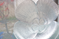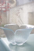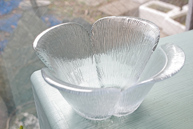 デンマークの王室御用達ブランド、Holmegaardのガラスのサービングボウルです。こちらはクローバーのようなお花のモチーフになっていて、深みがありますので、存在感があります。厚みのあるしっかりとした素材で、たっぷりのサラダなどをを盛り付けるのにぴったりの作品です。