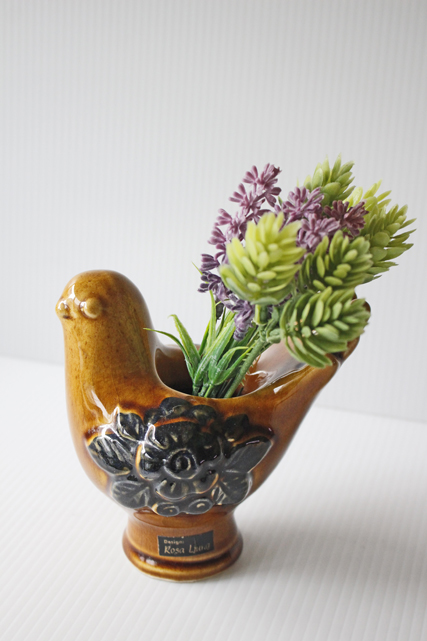 スウェーデン/Rosa Ljungデザインのオブジェです。こちらは小鳥がモチーフになっていて中央には、Rosa Ljungの得意なお花がデザインされており可愛らしい雰囲気です。ライトブラウンの珍しいカラーの鳥さんで、シックな印象です。
