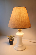 デンマーク、Royal Copenhagen(ロイヤルコペンハーゲン)のテーブルランプです。こちらはミルクガラスのクラシカルなデザインで、ガラスの美しさが際立つフォルムになります。どのようなインテリアにもマッチするおススメのデザインです。電気器具は、日本仕様に国内メーカーに取り付けていただいておりますのですぐにお使いいただけます。シェードはオリジナルではありませんが、シェード専門店にて麻素材のシンプルなものをご用意しました。ランプのサイズに合わせてお付けしていますが、シェードが不要の場合は、定価より2500円引きとさせていただきます。