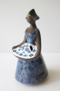 スウェーデン、jie gantofta社製の陶器の花瓶です。女の子が両手でエプロンを広げているポーズで穴の開いている部分にお花を活けて頂くと華やかなオブジェになります。コバルトブルーの美しいドレスが素敵です!