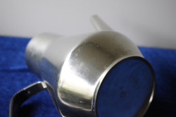 ノルウェー製のピューターのコーヒーポットです。こちらは丁寧な作りの味わいのあるデザインで、持ち手にはプラスティックの巻物が施され、レトロ感溢れる素敵なポットです。ピューターがお好きな方におすすめしたい作品です。