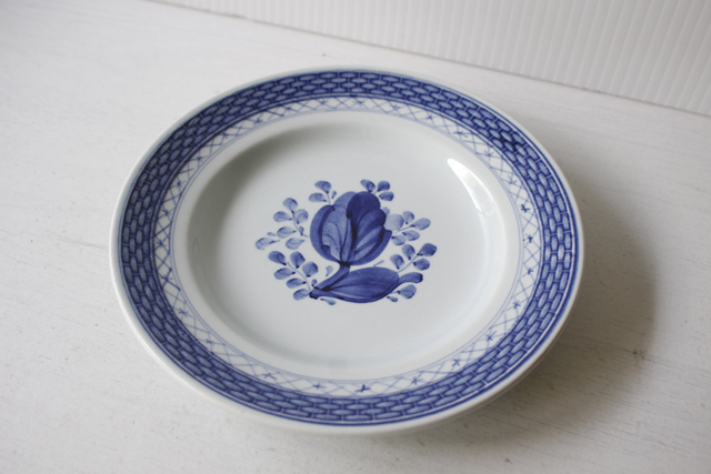 デンマーク、Royal Copenhagen(ロイヤルコペンハーゲン)/Alminiaのパンプレートです。トランクェーバー/Tranquebarとはデンマークの植民地だった南インドの地名がシリーズ名となっており東洋の雰囲気が伝わってくるのもわかりますね。中央に描かれた可愛らしいチューリップ、縁周りの網目模様がカジュアルな雰囲気も醸しだしてデイリーに気軽に使っていただけます。描かれた図案は全てハンドペイントで施されており、素朴で愛らしい作品に仕上げられております。