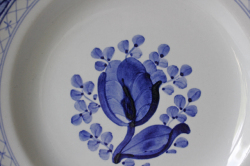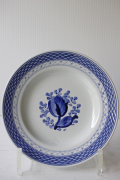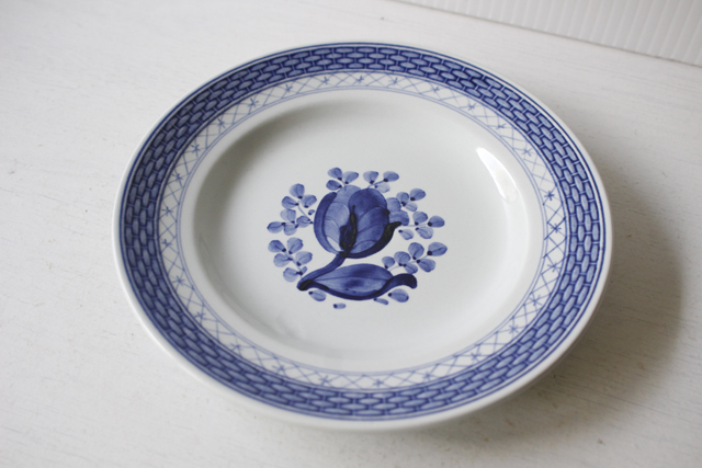 デンマーク、Royal Copenhagen(ロイヤルコペンハーゲン)/Alminiaのパンプレートです。トランクェーバー/Tranquebarとはデンマークの植民地だった南インドの地名がシリーズ名となっており東洋の雰囲気が伝わってくるのもわかりますね。中央に描かれた可愛らしいチューリップ、縁周りの網目模様がカジュアルな雰囲気も醸しだしてデイリーに気軽に使っていただけます。描かれた図案は全てハンドペイントで施されており、素朴で愛らしい作品に仕上げられております。