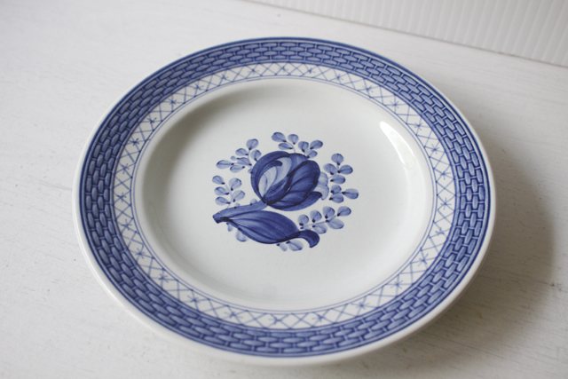 デンマーク、Royal Copenhagen(ロイヤルコペンハーゲン)/Alminiaのパンプレートです。トランクェーバー/Tranquebarとはデンマークの植民地だった南インドの地名がシリーズ名となっており東洋の雰囲気が伝わってくるのもわかりますね。中央に描かれた可愛らしいチューリップ、縁周りの網目模様がカジュアルな雰囲気も醸しだしてデイリーに気軽に使っていただけます。描かれた図案は全てハンドペイントで施されており、素朴で愛らしい作品に仕上げられております。