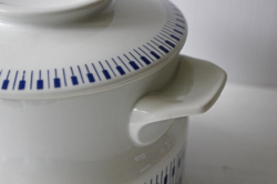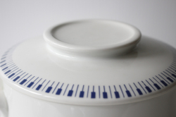 1936年~1969年という短い間しか存在しなかった、デンマークのLyngby Porcelain(リュンビュー・ポーセリン)のキャセロールです。こちらは1950年代に作られたタンジェント(鍵盤)シリーズで、ピアノの鍵盤がモチーフとなっています。スープや煮物など様々なお料理をそのまま食卓に出すことで、食卓が華やぎ、楽しくなりそうなキャセロールでお勧めです。