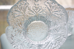 フィンランド、lasisepat製のヴィンテージのキャンドルホルダーです。こちらは花びらのようなモチーフで大変華やかで、キャンドルがゆらゆらと揺れ、大変美しいです。アイデア次第で器としても使えそうですね。