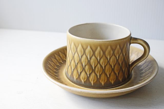 デンマーク、イェンス・クイストゴー(Jens.H.Quistgaard)デザインreliefシリーズのカップ&ソーサーです。葉っぱの形をモチーフにした絵柄が素敵なシリーズです。マットな釉薬を使用しているため、落ち着いた雰囲気を醸しだしています。