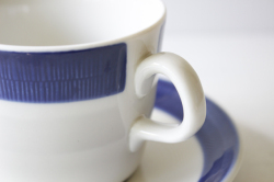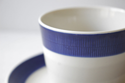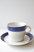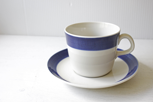 スウェーデン、Rorstrand(ロールストランド)の「KOKA」(男の子の意)シリーズ、ブルーのカップ&ソーサーです。Hertha Bengtsson(ヘルサ・ベングトソン)デザインの人気シリーズです。清々しい白磁に爽やかなブルーの帯のコントラストが素敵です。