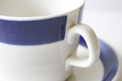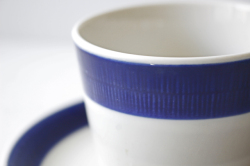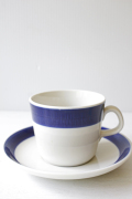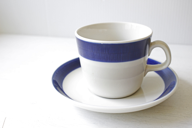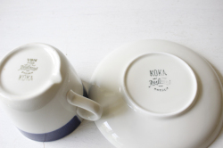 スウェーデン、Rorstrand(ロールストランド)の「KOKA」(男の子の意)シリーズ、ブルーのカップ&ソーサーです。Hertha Bengtsson(ヘルサ・ベングトソン)デザインの人気シリーズです。清々しい白磁に爽やかなブルーの帯のコントラストが素敵です。