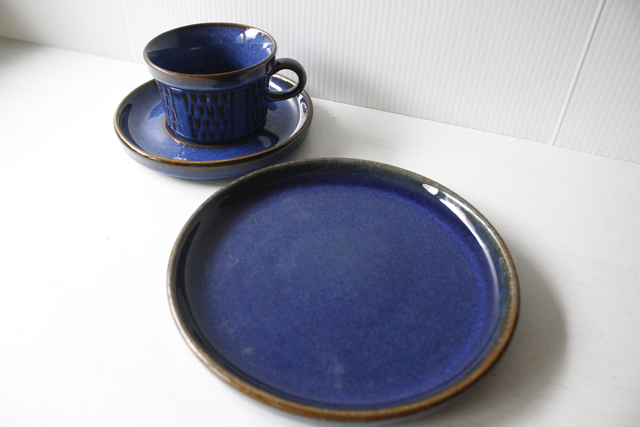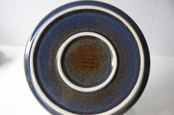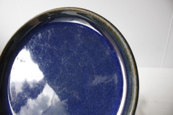 デンマーク、Soholm(スーホルム)のケーキプレートです。こちらは、スーホルム社でもっとも有名になった青のシリーズで、ぽってりとした厚みのあるフォルム、ブラウンににブルーが流し込まれたような複雑なお色が浮かび上がってとても美しいです。手作り品のため、釉薬のかかり方に個性があります。カトラリーキズなどコンディションの良いものが見つかりにくいシリーズです。