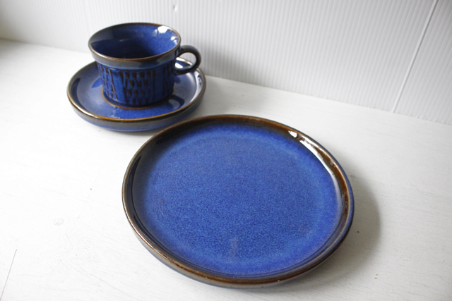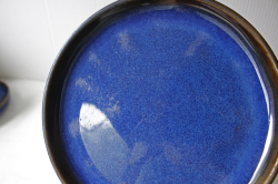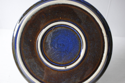 デンマーク、Soholm(スーホルム)のケーキプレートです。こちらは、スーホルム社でもっとも有名になった青のシリーズで、ぽってりとした厚みのあるフォルム、ブラウンににブルーが流し込まれたような複雑なお色が浮かび上がってとても美しいです。手作り品のため、釉薬のかかり方に個性があります。カトラリーキズなどコンディションの良いものが見つかりにくいシリーズです。