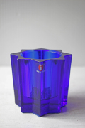 フィンランド、Ittalaのガラスのキャンドルホルダーです。Kerttu Nurminenデザインの可愛らしい星形のモチーフで、コバルトブルーの色合いが鮮やかで美しいです。元々生産数の少ないシリーズと言うこともあり、市場でもなかなか見かけない作品です。