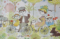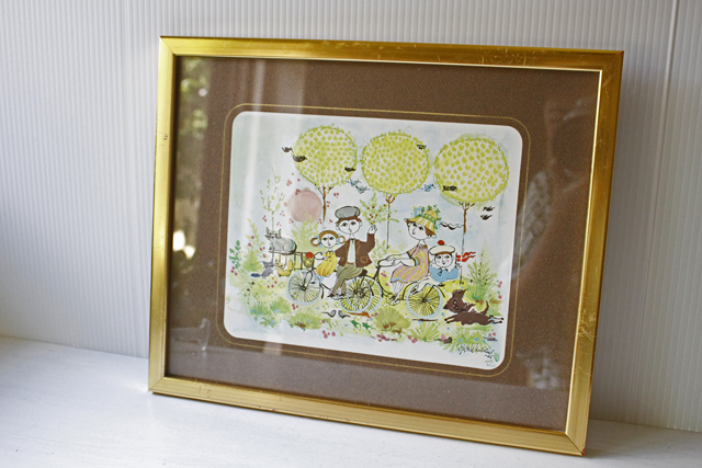デンマークの国民的人気デザイナーBjorn Wiinblad(ヴョルン・ウィンブラッド)の美しい額絵(イラスト)です。春・夏・秋・冬の4枚が存在するシリーズで、こちらは春になります。パステルカラーの優しい色調で家族のお出かけ風景をほのぼのと表現しています。肉筆ではなく印刷物になります。