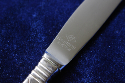デンマーク、Jens.H.Quistgaard(イェンス・クイストゴー)デザインのデザートナイフです。現地ではランチナイフと呼ばれており、軽食やデザートなどに使用し、ディナーナイフよりも少しの差ですが小さいサイズになります。こちらは、Stjerneシリーズで、シルバープレートのカトラリーになり、シリーズの名の通り、星がキラキラと輝くイメージの美しいデザインになります。厚みのあるしっかりとしたカトラリーで大変おすすめです。定期的に磨いていただくと、キラキラと輝きが増し、長きに渡りお楽しみ頂けます。こちらのシリーズのディナー、デザートナイフは現地でも数が少なく、あまり流通していませんので、お探しの方はお見逃しなく。