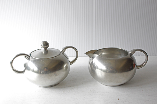 オランダ、Royal Holland PewterDaalderop社製のピューターのクリーマーです。こちらは丁寧な作りの味わいのあるデザインで、コロンとしたフォルムが可愛らしく、ピューターがお好きな方におすすめしたい作品です。