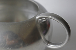 ※錫(ピューター)…古来よりヨーロッパや中国で金属食器やアクセサリーとして使われてきました。他の金属のように錆びたりすることなく、耐変色性に強く、金のように水を浄化する能力があると言われています。また、銀白色の美しい金属光沢を永く保つことが大きな特徴です。お手入れは、中性洗剤で洗ったあと水気をふき取る。汚れ(表面の黒ずみ)が出てきたら、少量の歯磨き粉で磨く。その後、ぬるま湯で洗い流し水気をふき取る。