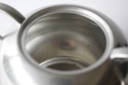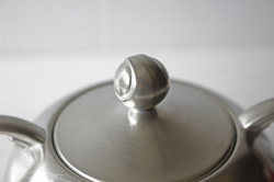 オランダ、Royal Holland PewterDaalderop社製のピューターのシュガーポットです。こちらは丁寧な作りの味わいのあるデザインで、コロンとしたフォルムが可愛らしく、ピューターがお好きな方におすすめしたい作品です。