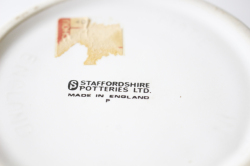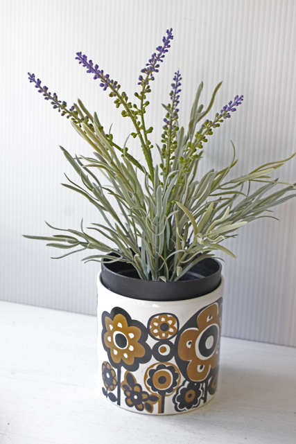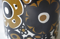 イギリス、staffordshire社の鉢カバーです。こちらは厚み、安定感のあるしっかりとしたつくりで、可愛らしいフラワーモチーフがデザインされています。観葉植物を入れてリビングに、鉢植えハーブを入れてキッチンの窓際に、また鉛筆やペン立てとして机上に置いたり、カトラリーを立てて収納するにもちょうどよい大きさで多様にお使い頂けそうです。staffordshire社のレトロな作品は70年代のマグカップなどをはじめ、レトロ雑貨好きな方には大変人気のある作品です。